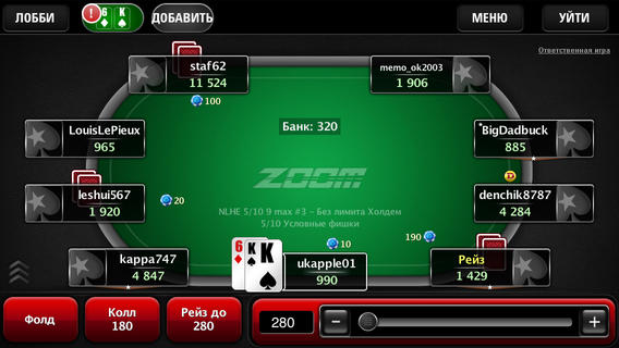 - Удобная реализация игры за несколькими столами (4 стола на iPhone и 5 столов на iPad).