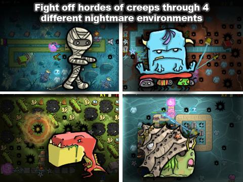 The Creeps! - отличная аркадная игра в жанре Tower Defence для Вашего мобильного устройства. Сюжет перенесёт Вас из привычных для этого жанра сражений в мир детских кошмаров и страхов. Ваша задача - строить игрушечные башни-бластеры, чтобы расправиться со всеми монстрами, которые наводят на Вас ужас. Не дайте ни одному монстру дойти до двери, которая ведет к детской кроватке. Не позволяйте напугать и нарушить сон!