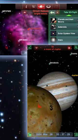 - машина времени для всех объектов для 20 и 21 века. Посмотрите положение звезд, комет, Земли и Луны в выбранное вами время, причем вы можете ускорять и замедлять ход времени.