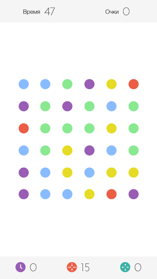 Ваша задача проста: соедините как можно больше точек одного цвета за 60 секунд. Подключите свои аккаунты в Twitter и Facebook и соревнуйтесь с друзьями. Теперь в Точках появился совершенно новый режим, в котором вам предстоит соединять точки не на время, а за определенное количество ходов. Расслабьтесь и не спеша планируйте тактику игры. Также вы сможете доказать, что вы лучший игрок, чем ваши друзьям, с помощью локального многопользовательского режима. Отыграйте раунд, затем передайте управление другу в дуэли один на один.