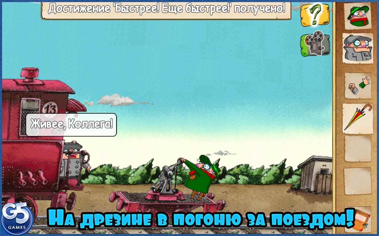 Друг и соратник Братьев Пилотов кот Мышьяк был похищен кулинаром – экспериментатором по имени Сумо! Нашему именитому тандему предстоит отправиться по следу Мышьяка, а не то попадет усатый в пресловутый «суп с котом». Сумасбродная детективная заварушка начнется с составления фоторобота похитителя с помощью свидетеля. А потом вам предстоит удрать от контролеров на вокзале, чтобы на дрезине рвануть в погоню за Сумо и котом. Помогите Братьям Пилотам перейти на другую сторону реки - без моста - и решить массу других головоломок ради спасения Мышьяка!