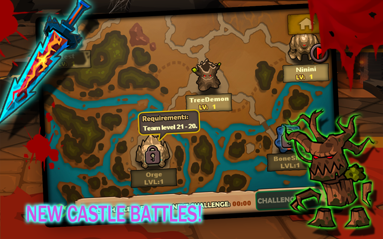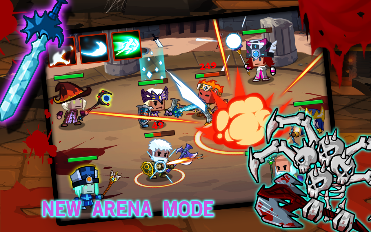 Heroes vs Monsters - в этой увлекательной РПГ для андроид вам предстоит создать команду истинных героев. Эдакая "неповторимая четверка". Вместе с главными героями вы будете путешествовать по большущему миру и исследовать окрестности в поисках воинов злого колдуна. Вас ждет множество монстров и боссов, разные классы герои и множество их настроек! Вы сможете принять участие в нескольких десятках сражений, в которых сможете насладиться и самим боем и добычей! Собирайте трофеи, сражайтесь и побеждайте!