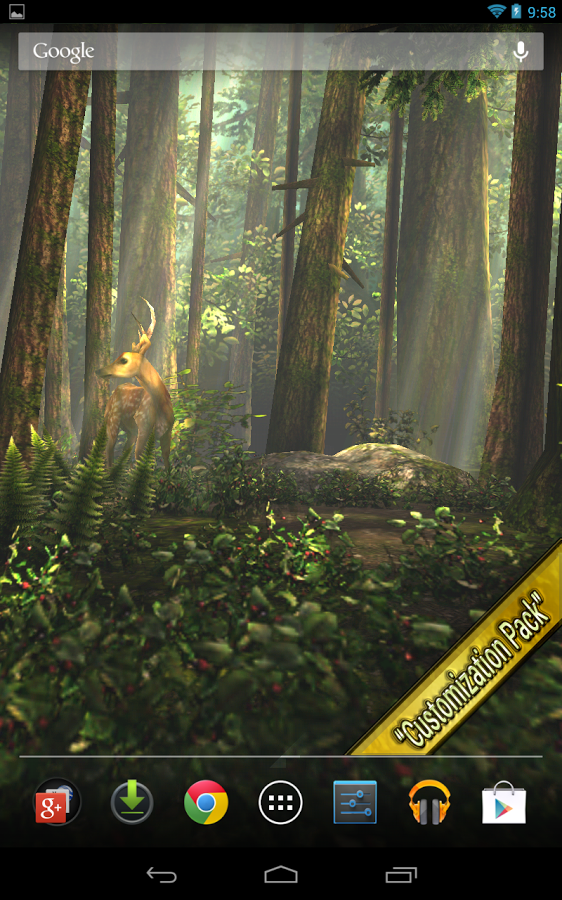 Великолепный лесной мир дикой природы в котором вы будете находится в окружениях природной красоты каждый раз, как вы будите использовать свое устройство. Солнечный свет просачится сквозь деревья, легенький ветерок шелестит листвой, остановись для размышлений на пути, и понаблюдай как пасется олень и послушай трепетания птиц в тихом одиночестве!