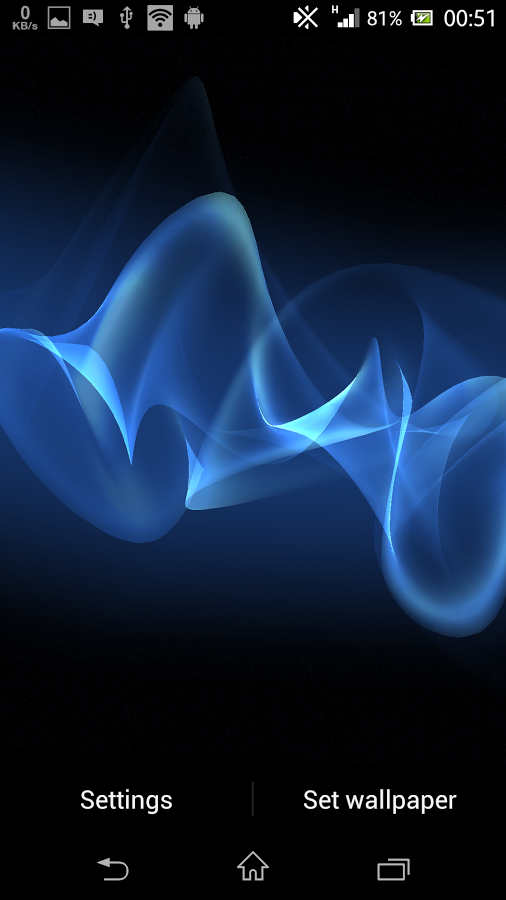 Вы вольны выбрать цветовую тему оформления из десяти предложенных и каждый тап по экрану будет менять вид волны на произвольный - очень хорошо смотрится! Конечно же, волны и сами неплохо движутся и переливаются по экранам, создавая чарующее зрелище, способное даже вызвать небольшую медитацию и размышления о неподвластном...