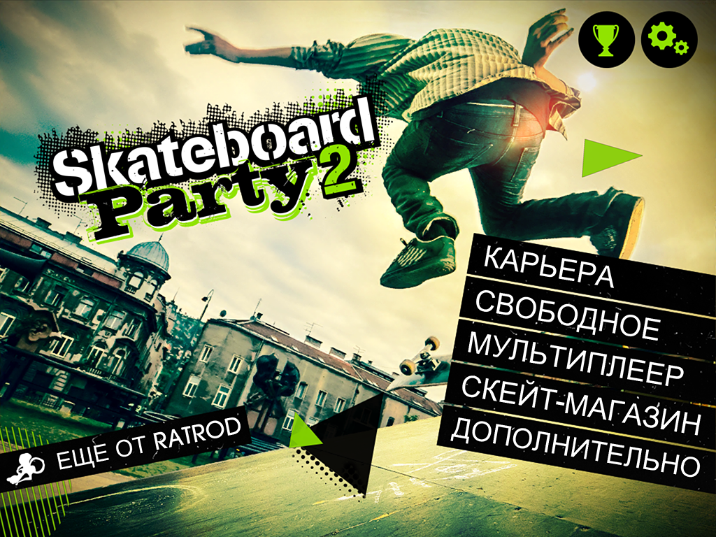 Skateboard Party 2 - один из лучших симуляторов скейта для Вашего мобильного устройства. Запрыгивайте на доску и прокатитесь по 8 уникальным местам. Оттачивайте своё мастерство в этом виде развлечения, делайте трюки, комбо и просто хорошие прыжки. В игре доступен режим мультиплеера, так что Вы легко сможете посоревноваться с друзьями и получить массу удовольствия.