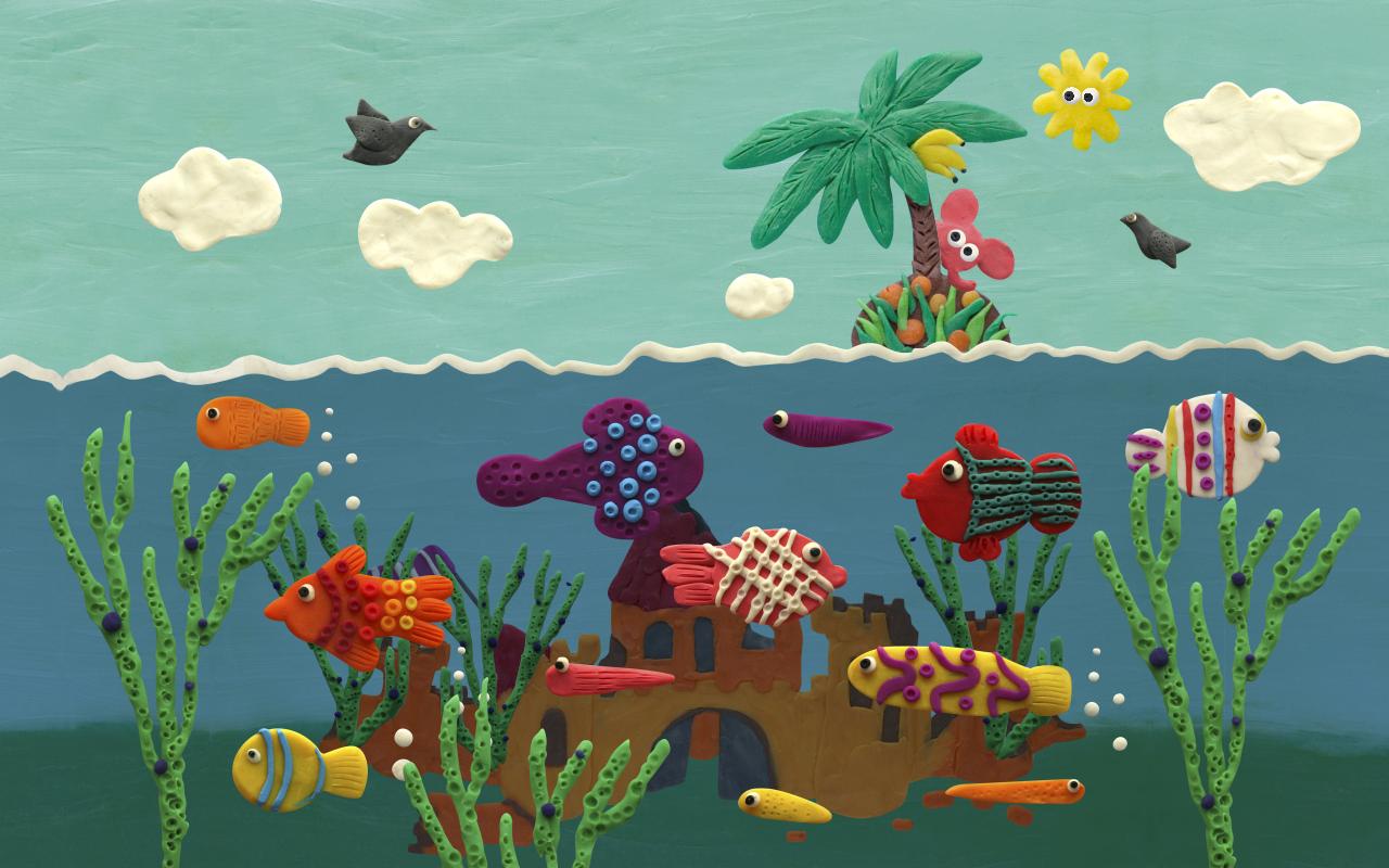 Аквариум в стиле пластилина. Теперь вы можете установить это произведение на свой Android телефон или планшет. Наслаждайтесь этим островом морской жизни и красоты природы.