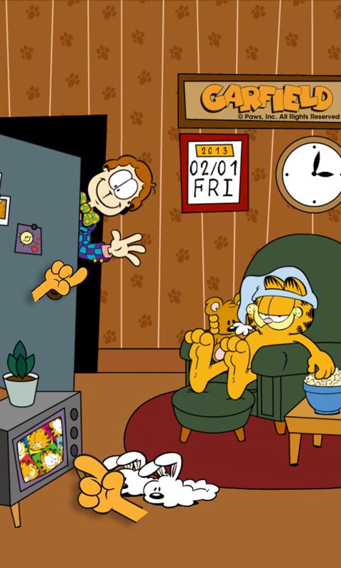Расслабьтесь и получайте удовольствие от любимого жирного кота Гарфилда, который расположился на домашнем экране вашего устройства! Гарфилд не может справиться с ленью весь день: он то обнимает Pooky, ест попкорн, дремает ... ему комфортно у себя дома. Нажмите на различные детали, чтобы увидеть смешные всплывающие окна! Скука не допускается, если Гарфилд рядом!