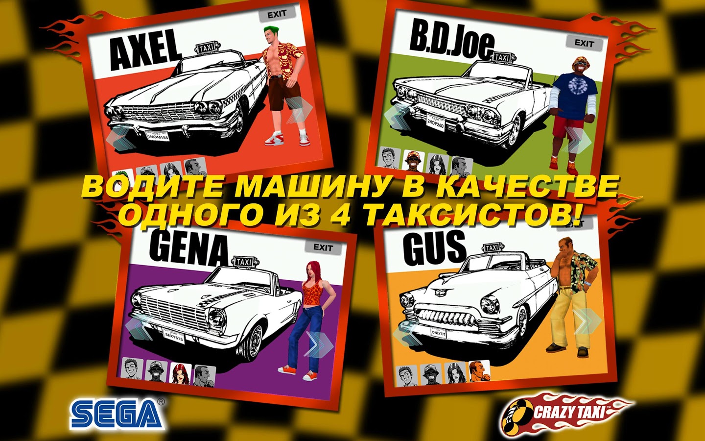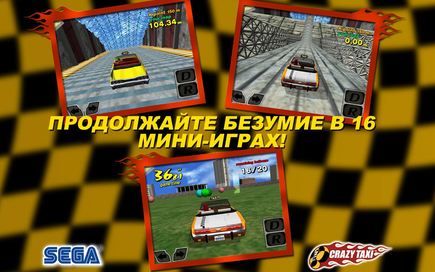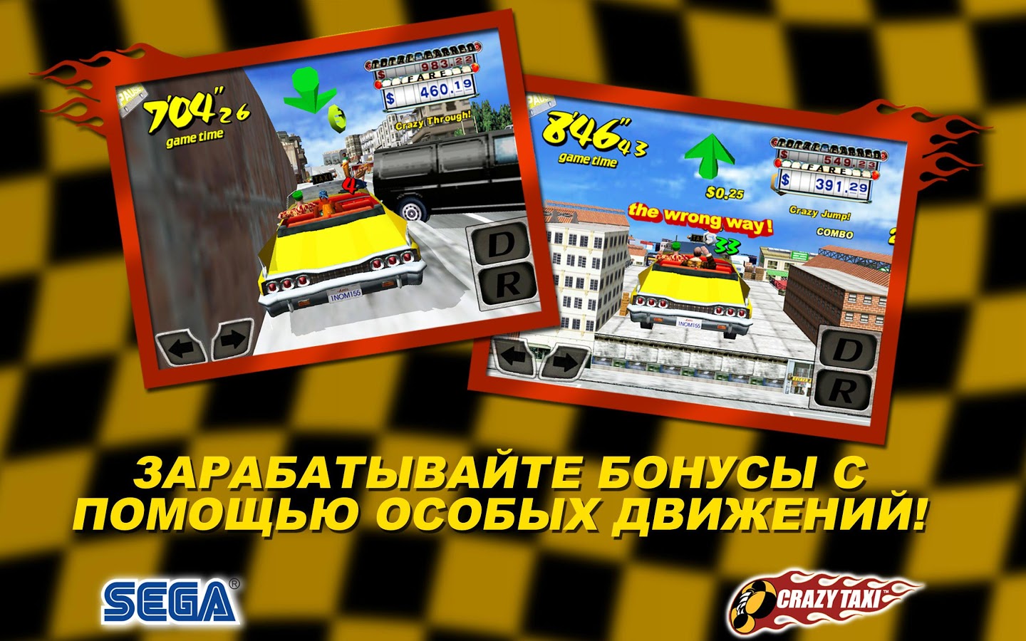 Прокатитесь по улицам с бешеным движением, сшибайте барьеры автостоянок и выбирайте чумовую дорогу за сумасшедшие деньги в безумной и дикой гонке, способной напугать большинство пассажиров. В Crazy Taxi время - деньги, и только самые отчаянные водилы выйдут из игры победителями.