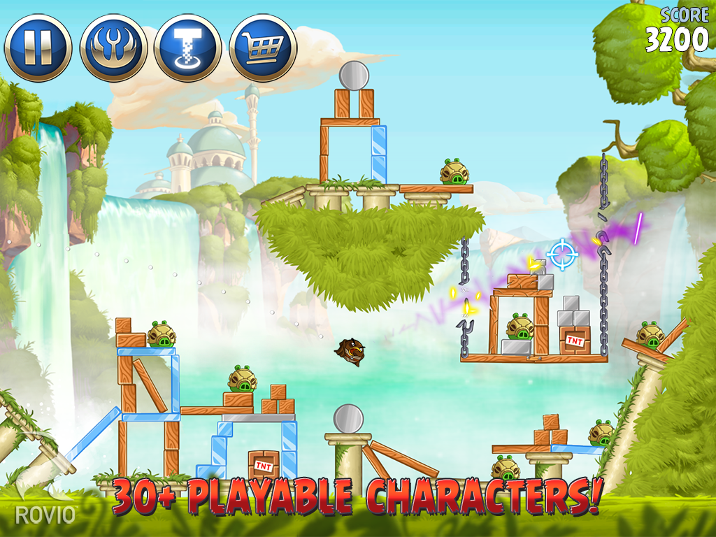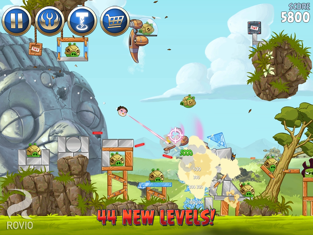 Angry Birds Star Wars II - самая популярная аркада от компании Rovio, которая предлагает Вам поучаствовать в войне между свинками и птичками. И в этой части впервые Вам предоставляется возможность выбрать сторону свиней и сразиться против птиц! Сыграйте за ужасного Дарта Мола, Императора Палпатина и других любимых персонажей! Самый большой выбор персонажей за все время существования игры — Йода, гонщик на карах Энакин, Мейс Винду, Джанго Фетт и многие другие!