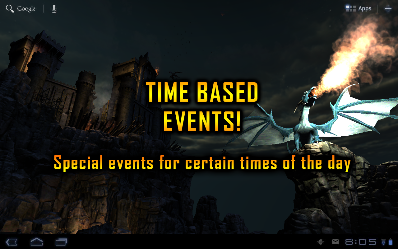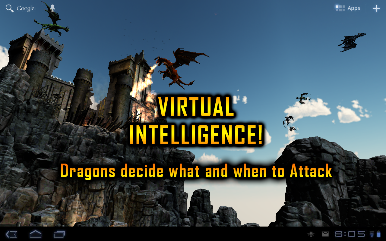 Извечная средневековая борьба простых людей с огромными историческими драконами, красивая битва летающих и метающих огнем существ с охраняющим свое добро человечеством, предоставляется для ваших телефонов. Выдумывая всевозможные катапульты и другое мощное оружие, люди пытаются защитить осажденный замок. Наблюдать такую картину на экране смартфона можно, если скачать программу Dragon Strike Live Wallpaper на Андроид. В приложении весьма уместная и качественная озвучка, превосходная графика. Все выглядит вполне реалистично, будто просматриваешь полноценный исторический фильм про сказочных драконов.