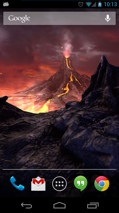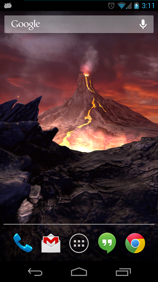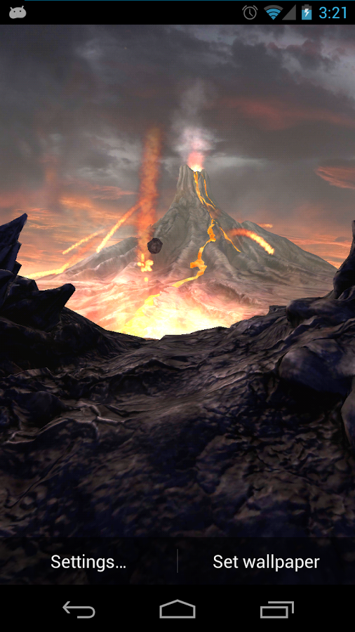 Установите на Ваш планшет живые обои Volcano 3D Live Wallpaper и сможете почувствовать горячее дыхание раскалённой лавы в лицо! При этом ещё и крупные камни летят в Вас изнутри, грозя разбить экран - смотрится довольно реалистично и грозно! Разработчик предпочёл смотреть на извержение издалека и поэтому мы сможем лицезреть всю красоту и мощь природного явления находясь на относительно безопасном расстоянии. Даже, при желании, можно перекрасить вид неба и всей картины в целом, сменить время суток (ночью страшнее смотрится) и скорость процесса, а при двойном клике по дисплею принудительно вызвать очередной выброс лавы и камней!