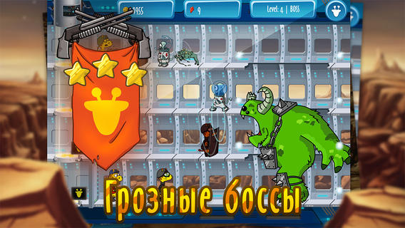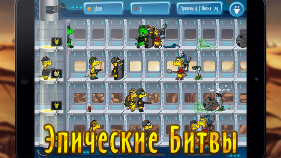 Когда вы попадаете на базу, вам нужна тщательно разработанная стратегия для максимально эффективной защиты и избавления от возможно большего количества назойливых марсиан! Каждый новый уровень опаснее предыдущего, а враги всё сильнее и озлобленнее. Но не пугайтесь! Вам также становятся доступны всё более крутые и продвинутые воины спецотряда «Жирафы».