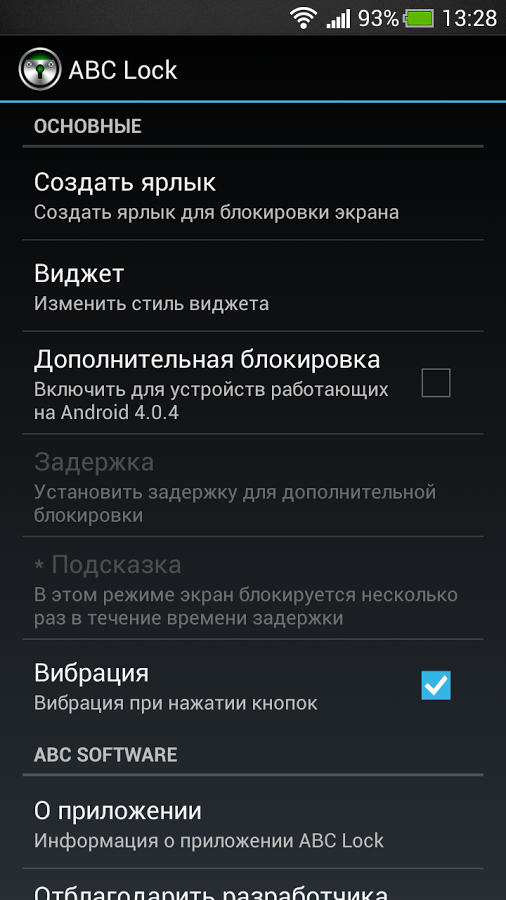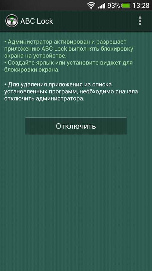 ABC Lock простое приложение для быстрой блокировки экрана на устройстве Андроид.