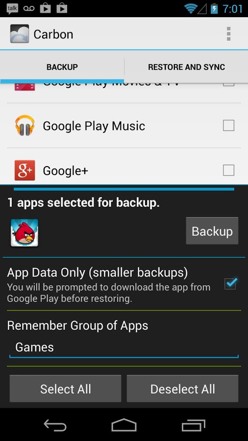 Helium - приложение для резервного копирования и синхронизации Android, конкурент Titanium Backup. Возможность работы без root с использованием настольного клиента.