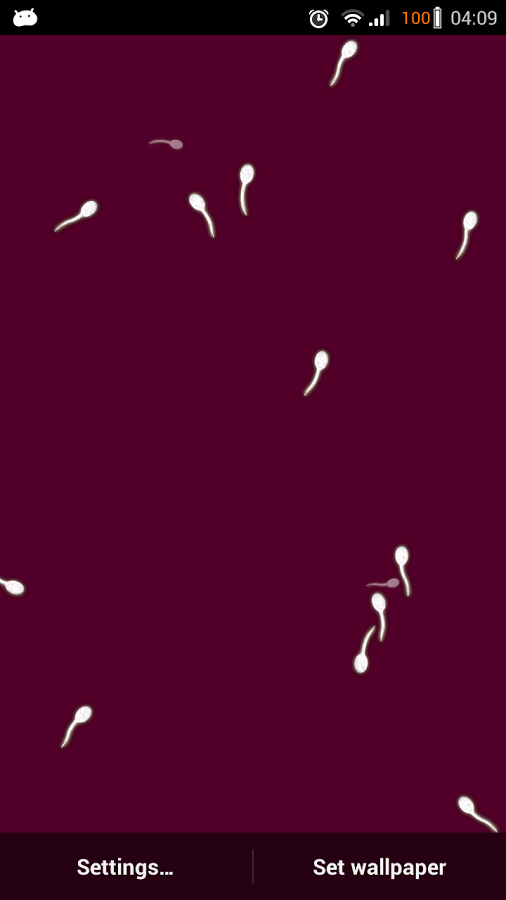 Наскучили обычные живые обои со зверушками, погодными явлениями, автомобильной и другой тематикой? Хочется чего-то нестандартного, оригинального – получайте. Совершенно новый подход в создании живых обоев для мобильных устройств, которые демонстрируют истинно мужское начало и силу. По экрану вашего телефона будут активно плавать сперматозоиды, что реагируют на прикосновение. Получить возможность наблюдать за этими клетками можно, если скачать приложение Sperms Shooting Orphans для Android. Вы можете изменять скорость и частоту движения сперматозоидов, а также цвет заднего фона.