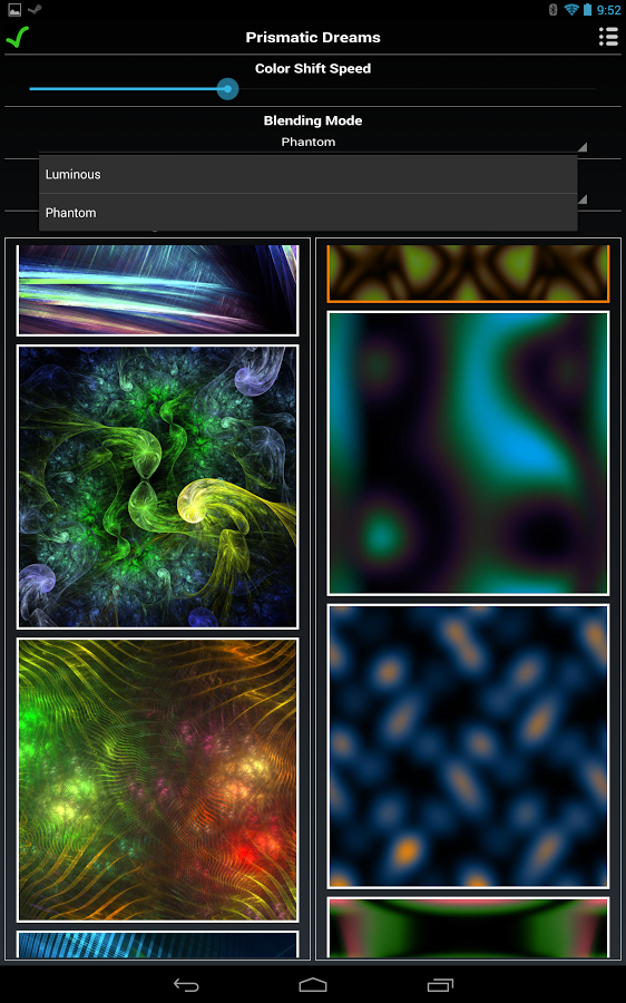 Головокружительный абстракт - именно так можно охарактеризовать живые обои Prismatic Dreams PRO Live WP! Масса непонятных картинок, фигур, линий блестят и переливаются всевозможными бликами и свечениями - аж в глазах рябит... Можно настроить всё это действо как угодно: выбрать переднюю аннимацию, задний фон, ускорить или замедлить степень бликования, увеличить частоту скорости и так далее - вариантов масса и один из них на видеообзоре, неплохо вышло, да ?