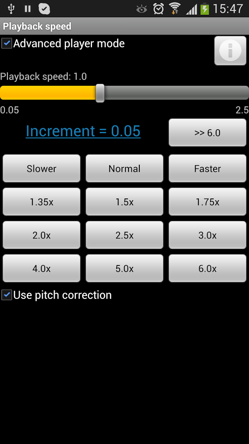 Изменяемая скорость воспроизведения: замедление и ускорение вплоть до шестикратного с регулируемым тоном
