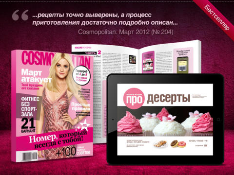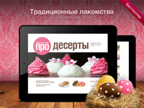 Что нужно, чтобы приготовить потрясающий десерт? Вдохновение! Вы получите его в подарок вместе с самым ярким и «вкусным» приложением для iPad «Десерты». Перед вами уникальная коллекция из 64 рецептов самых изысканных сладких блюд. Благодаря точным указаниям, секретам шоколатье и шеф-поваров вы приготовите самое хрустящее слоеное тесто, самый воздушный бисквит, нежнейшее безе и пикантное пралине. Все пропорции выверены, время указано до минуты, а температура — до градуса. Осталось самое сложное — сделать выбор!