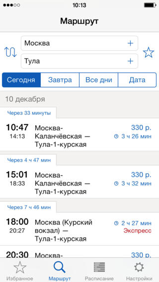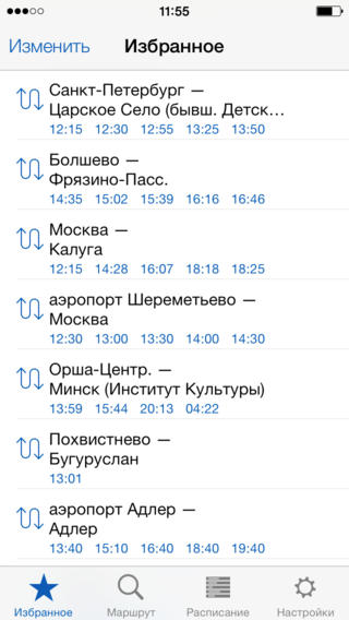 Всегда актуальное расписание электричек — с учетом всех изменений. Узнавайте точное время отправления, цену билета и номер платформы. Избранные и ранее просмотренные маршруты доступны без подключения к интернету.