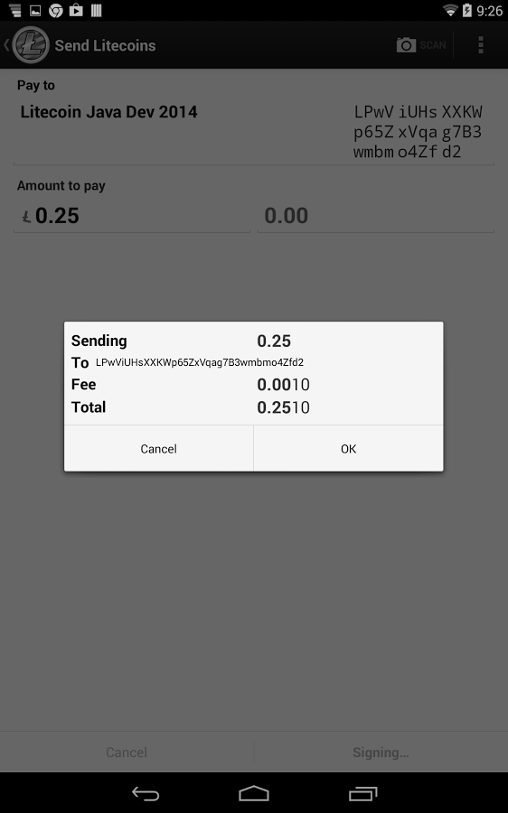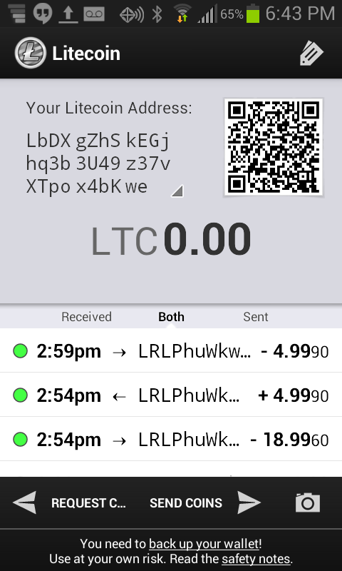Теперь ваши лайткоины всегда с Вами в Вашем кармане. Вы сможете расплачиваться лайткоинами просто отсканировав QR-код продавца, который сможет получать ваши LTC мгновенно. Это первый Litecoin кошелек для андроида, и, возможно, самый надёжный.