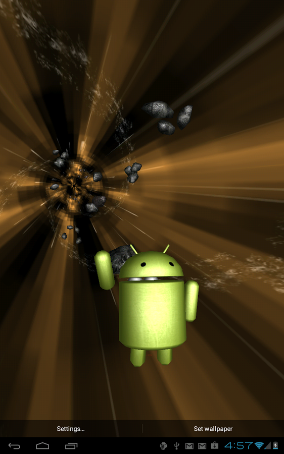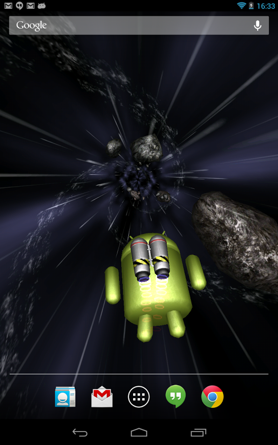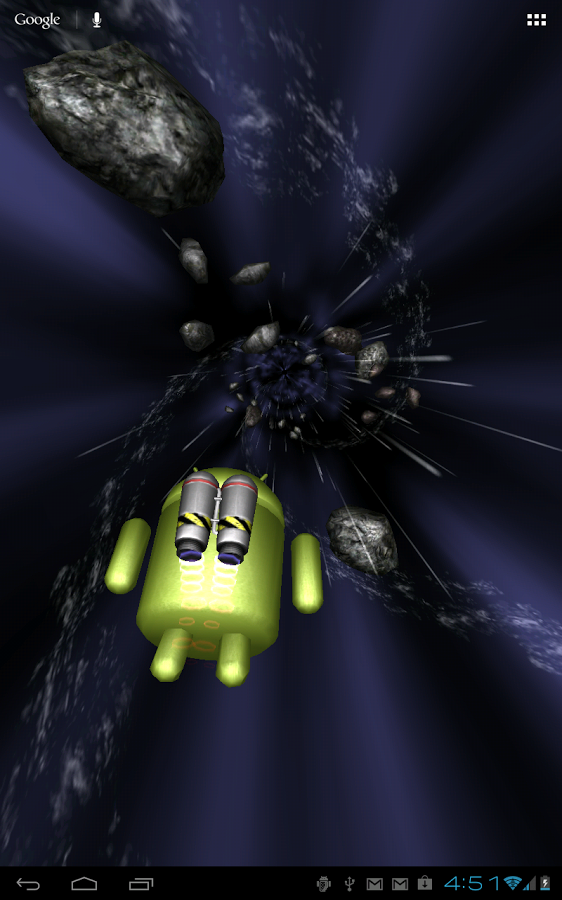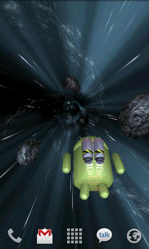Летите через пространство с Вашим другом Андроидом, между звездами и астероидами с такой скоростью, какой захотите! Двойной клик, чтобы сказать привет, сделать бочку, или использовать турбо ускорение - получатся различные действия в зависимости от того, где Вы касаетесь экрана!