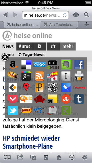 iCab Mobile обеспечивает полноэкранный режим, в котором весь экран используется для отображения веб-страницы.