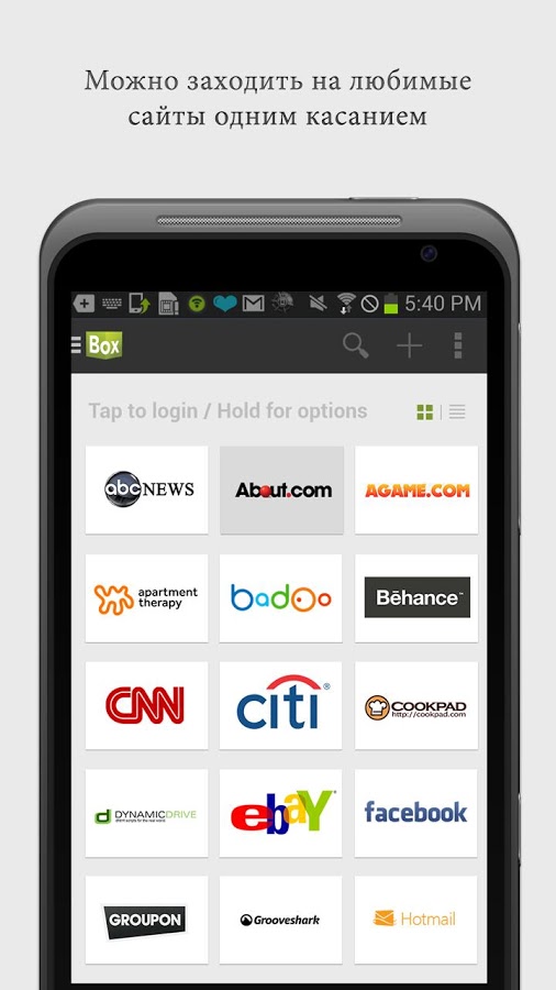- Позволяет входить в другие мобильные приложения одним нажатием.