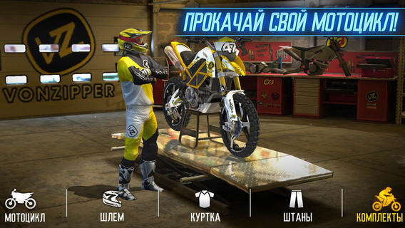 Создай своего собственного гонщика и столкнись лицом к лицу с мировыми профи! Срази всех наповал одеждой от Metal Mulisha, Monster Energy, GoPro и других спонсоров!
