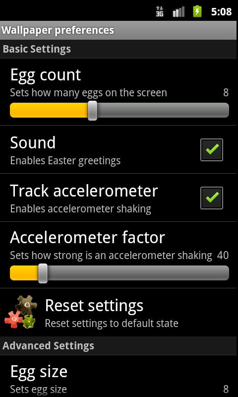Красивые прозрачные яйца перемешиваются и сталкиваются, когда вы встряхиваете устройство. Вы должны проверить свою удачу и найти счастливое пасхальное яйцо! Когда вы касаетесь этого яйца, поздравление появится на экране. Вы не разочаруетесь, если не найдете его сразу - любое яйцо будет подпрыгивать от вашего прикосновения.