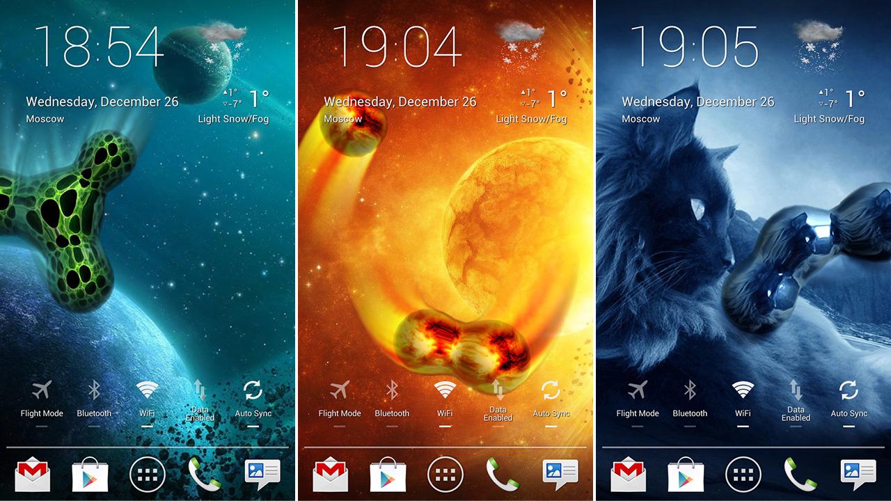 Мистические живые шары прибыли из неизведанной части Вселенной! Никто не знает, кто они. Исследуйте неизведанную форму жизни! Красивейшие интерактивные живые 3D обои с 15 абсолютно разными преднастроенными темами и огромным количеством настроек. Эффект текучей жидкости и невероятные абстракции могут ненадолго лишить вас рассудка! Потяни за шар - увидишь, что может случиться!