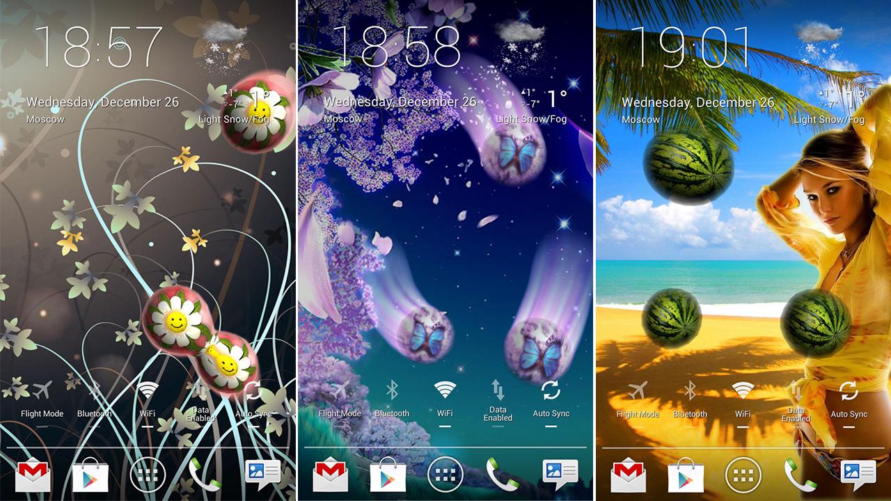 - Твоя собственная тема: выбери любые изображения из галереи, установи кол-во шаров, скорость, цвет, траекторию, настрой 3D эффекты и наслаждайся результатом!