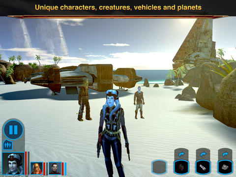 Испытайте эпической Star Wars ™ ролевой опыт с уникальными персонажами, созданиями, транспортными средствами и планетами.