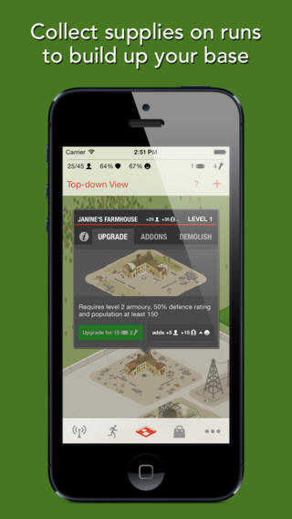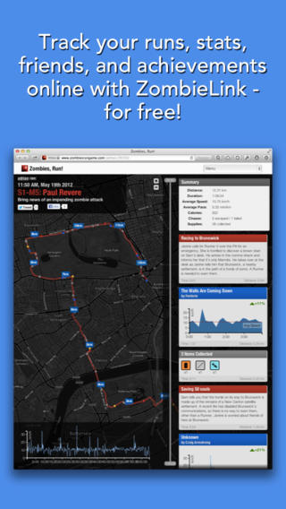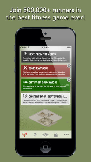 Zombies, Run! - приложение с дополненной реальностью для людей, занимающихся спортом. Работает следующим образом: Вы надеваете наушники и отправляетесь на пробежку, следуя указаниям голоса из приложения. Вам предстоит выполнять различные миссии, собирать еду, бонусы, оружие и медикаменты. Это приложение скрасит Ваши однообразные пробежки и сделает занятие спортом более увлекательным.