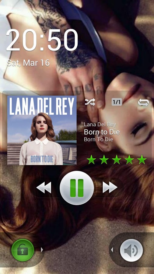 * Выбор 2 ЭКРАННЫХ виджетов БЛОКИРОВКИ с различными настройками: разблокировка ползунком, звук переключения, пропуск треков с помощью кнопки регулировки громкости, жесты, отображение времени, выбор скина...
