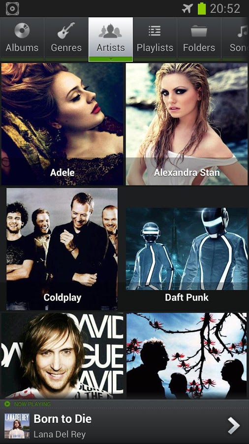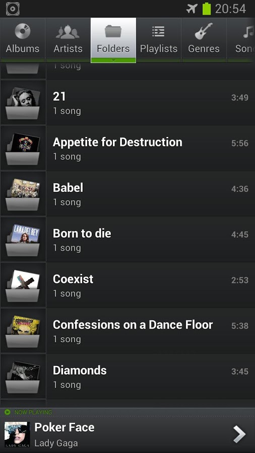 * Просмотр и воспроизведение музыки по альбомам, артистам, жанрам, песням, плейлистам, папкам и альбомам артистов.