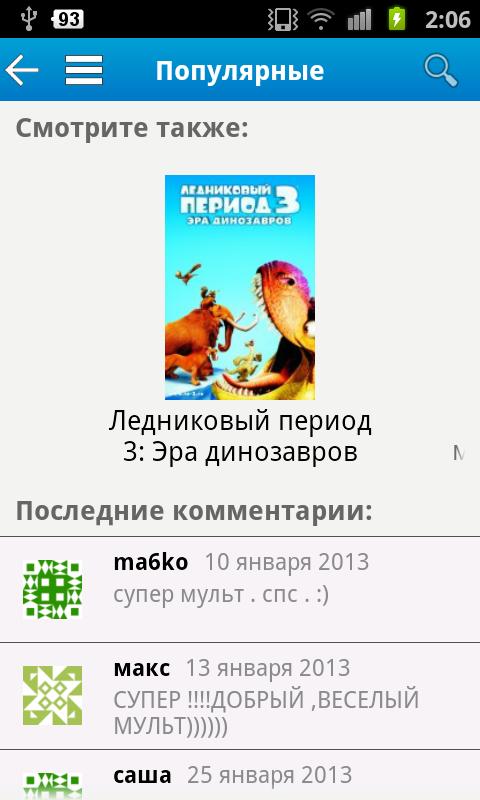 - бесплатно посмотреть фильм или мультфильм онлайн как в приложении, так и во внешнем плеере