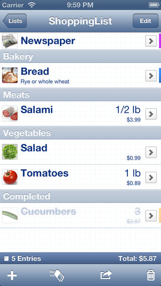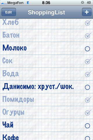 Нужный вам список товаров/продуктов полностью редактируемый, а в процессе покупок легко делаются пометки на уже приобретённое.