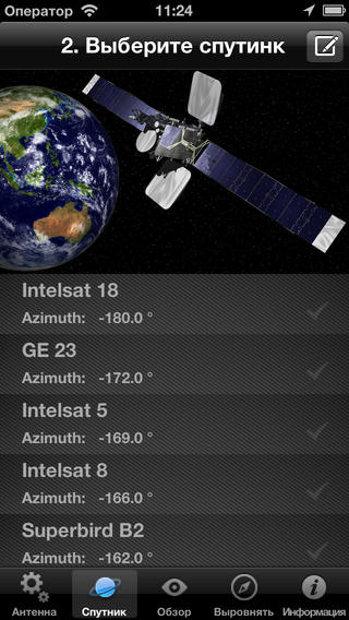 2) Выберите спутник на который хотите настроить антенну
