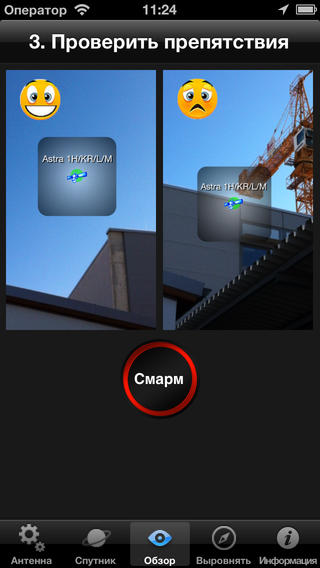 3) Испытайте есть ли препятствия в направлении к спутнику по прямой видимости