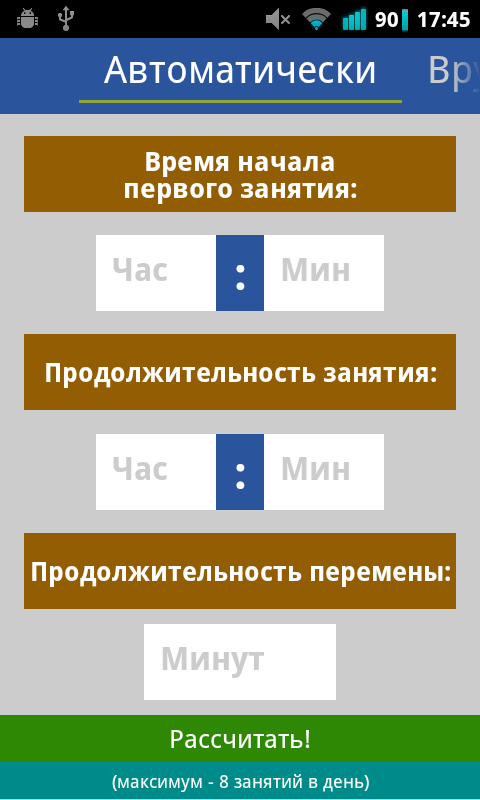 3) Автоматическая (не более 8 занятий в день) или ручная настройка звонков;