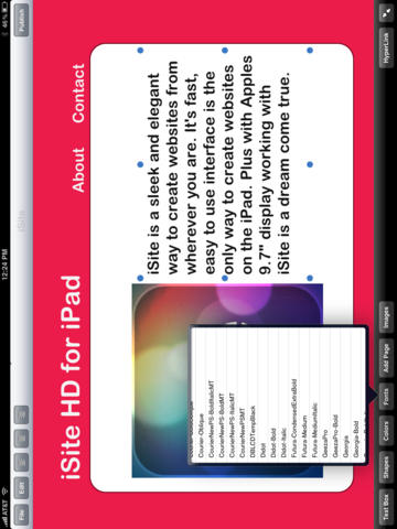 Немного об iSite HD. Теперь вы можете использовать Ваш iPad для создания полноценного веб-сайта. iSite HD позволяет разрабатывать веб-сайты с использованием нашего WYSIWYG (То, что Вы Видите, то Вы и получаете) интерфейса, который позволит вам перетащить компоненты сайта