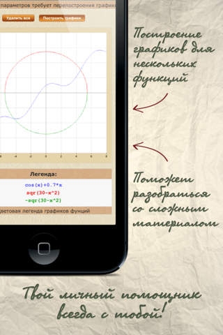 Так же iРешалка поможет вам построить график функций в прямоугольной системе координат на заданном интервале значений. В одной координатной плоскости можно построить сразу несколько графиков функций.