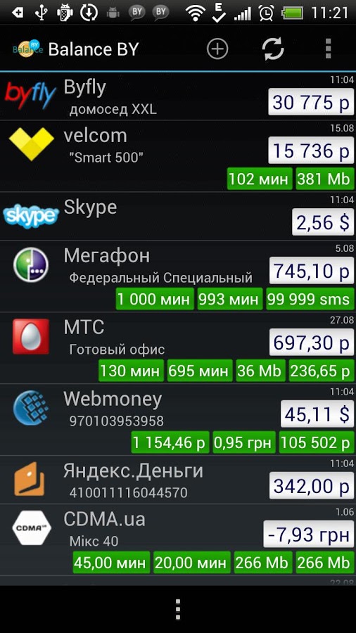 Автоматическая проверка баланса аккаунтов сотовых операторов и провайдеров.