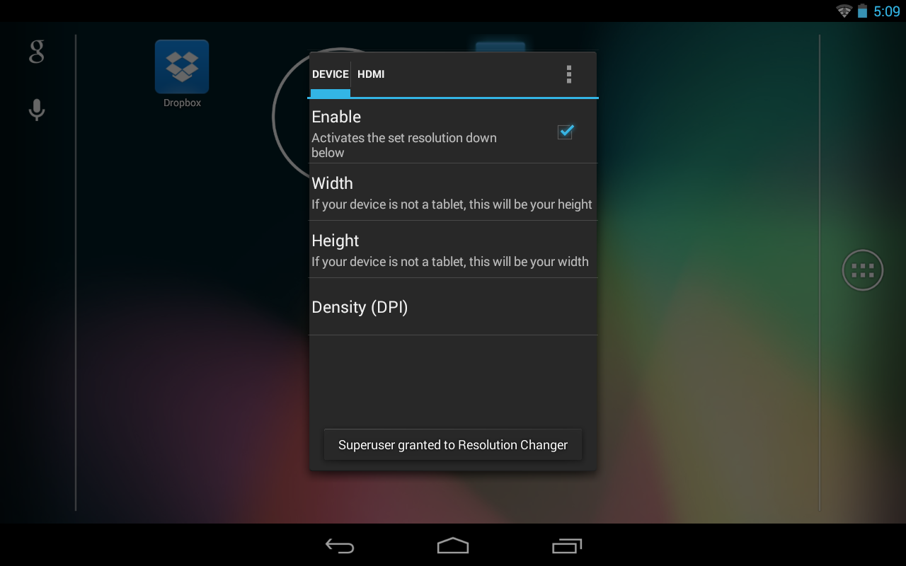 Resolution Changer Pro - ещё одна программа, которая позволит менять разрешение на Вашем Андроид-устройстве. Особенно полезна будет любителям поиграть в "тяжёлые" игры на слабых смартфонах. Повышайте FPS за счёт уменьшения разрешения экрана.