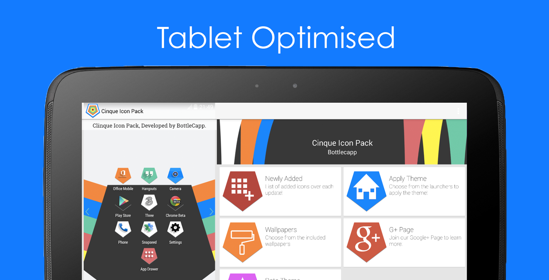 Пак гладких иконок в форме пятиугольника из 1000 штук с разрешением (144х144), каждая иконка имеет индивидуальную форму. Также, вместе с иконками вы найдете обои в высоком разрешении (2560х1600).