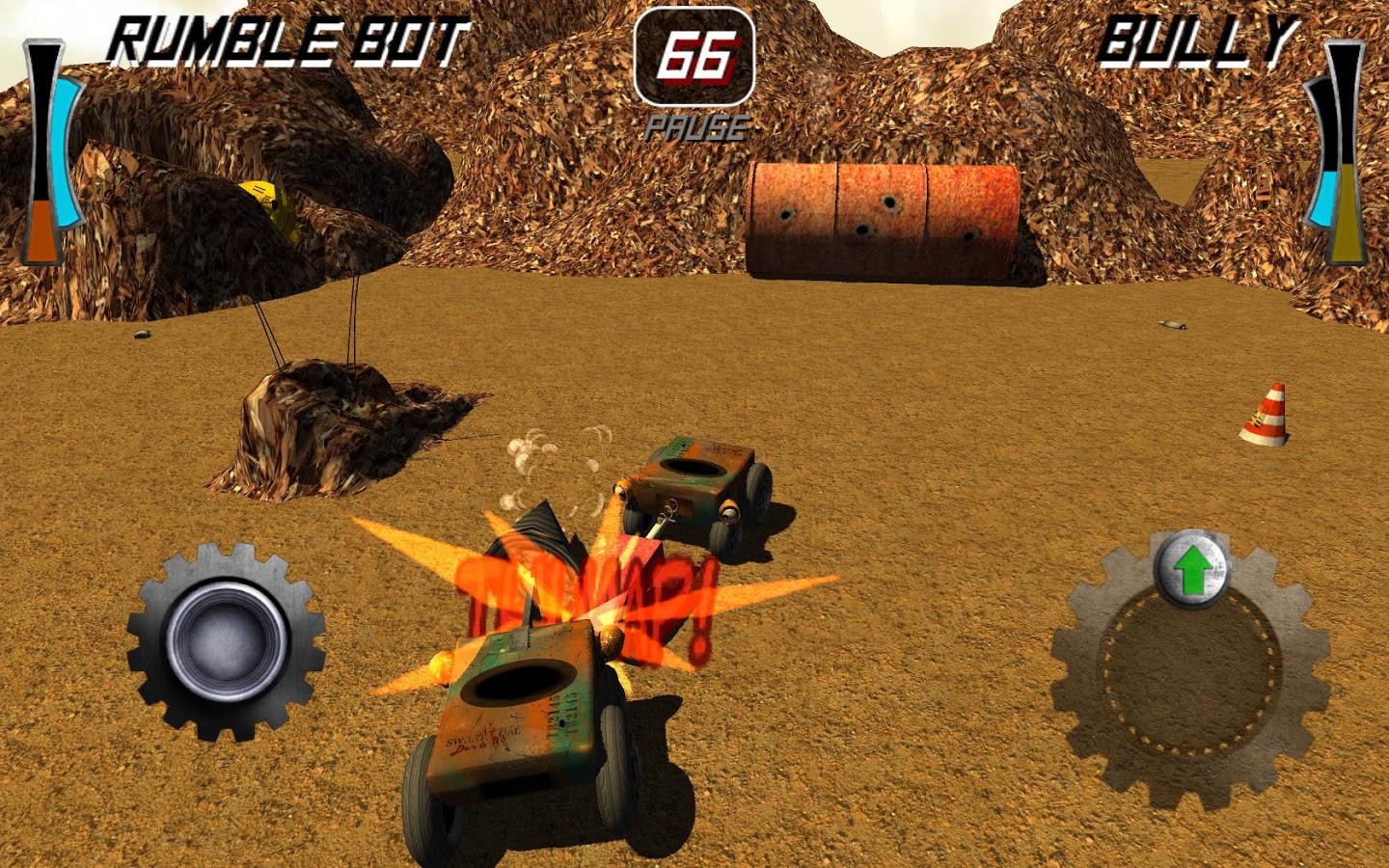 Rumble Bots - игра на андроид в которой вам необходимо собрать своего робота и участвовать им в боях. Вас ждут масса вариантов роботов. Отличные поединки и различные турниры в которых вы сможете доказать, что ваш робот самый лучший. Проводите бои, оттачивайте свои навыки управления, экспериментируйте с роботам, добавляйте новые части, совершенствуйте тактику и вы обязательно станете лидером.