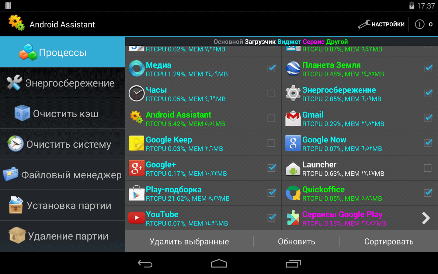 Process Manager – менеджер процессов с удобным разбиением по цветам (виджет, приложение, системный процесс)