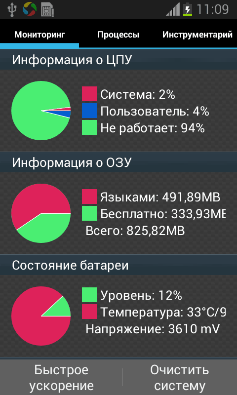 Мониторинг (память, состояние батареи, загрузка процессора)