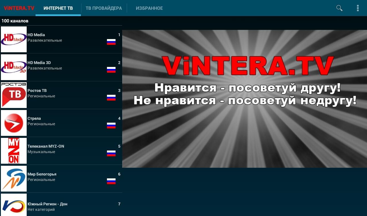 - Для подключения ТВ-каналов провайдера пришлите плейлист на info@vintera.tv