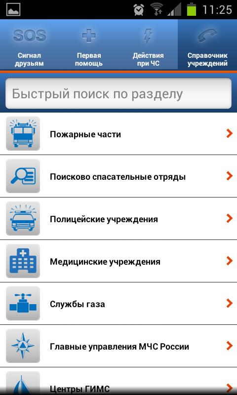 - найти ближайшую службу экстренного реагирования